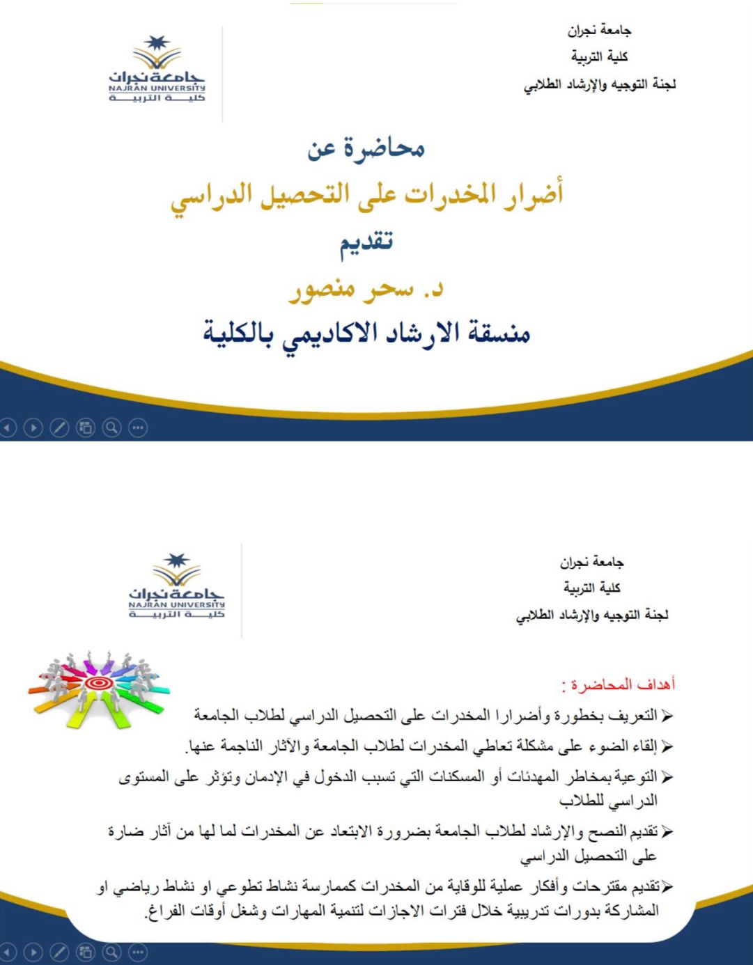 أضرار المخدرات على التحصيل الدراسي- محاضرة توعوية لطالبات كلية التربية - College of Education