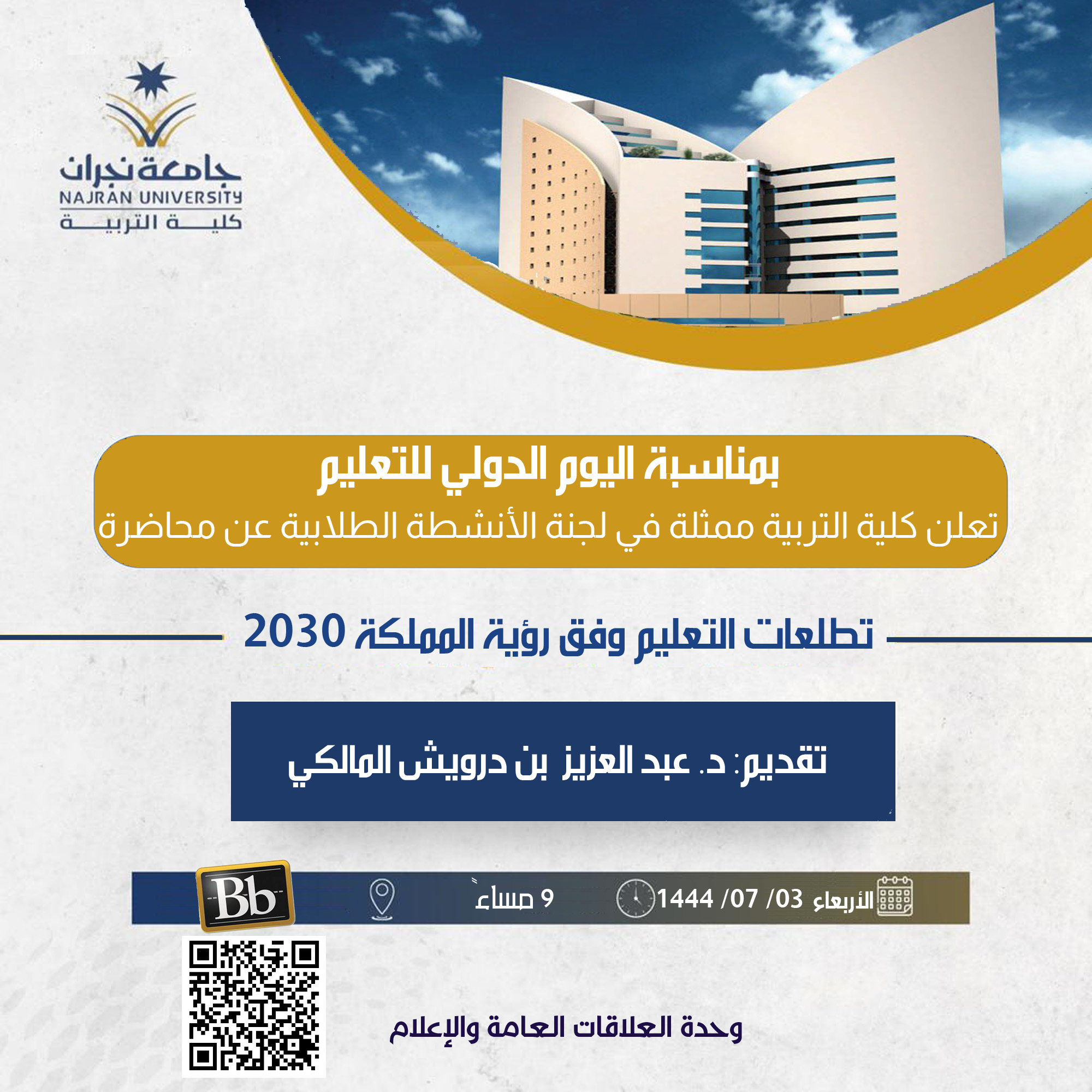 null بمناسبة اليوم الدولي للتعليم تعلن كلية التربية ممثلة في لجنة الأنشطة الطلابية عن إقامة محاضرة
