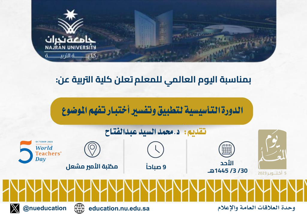 null بمناسبة اليوم العالمي للمعلم تعلن كلية التربية عن دورة