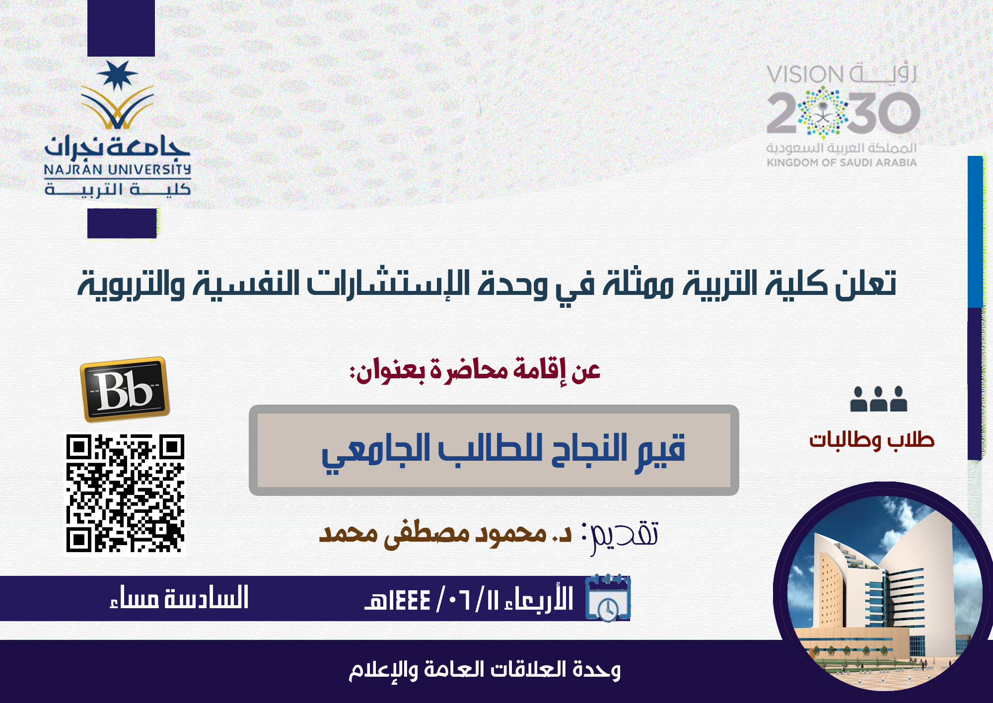 null تعلن كلية التربية ممثلة في وحدة الإستشارات النفسية والتربوية عن إقامة محاضرة