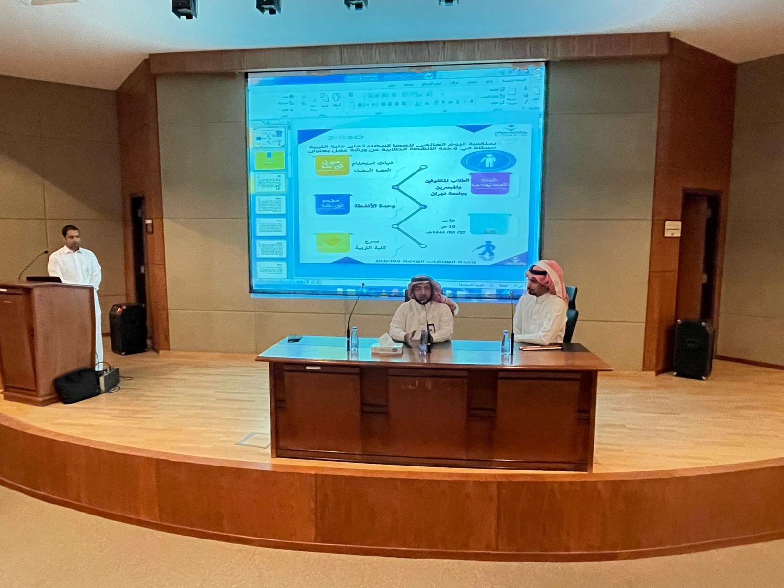 وقد بدا اللقاء بكلمة عميد كلية التربية الأستاذ الدكتور محمد بن عبد الله الحازمي مرحباً بالحضور ، مؤكداً على حرص كلية التربية ممثلاً في أنشطتها الطلابية على تقديم الأنشطة والفعاليات والمحاضرات وورش العمل التوعوية ذات العلاقة بذوي الإعاقة البصرية وذلك للمساهمة في تنمية الوعي في كيفية التعامل الصحيح مع الأشخاص من ذوي الإعاقة البصرية.