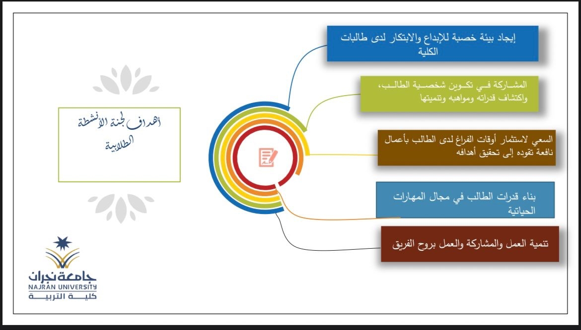 وقد بدأ اللقاء بكلمة لسعادة وكيلة كلية التربية د.نوف العتيبي التي رحبت بالطالبات المستجدات وتمنت لهن التوفيق والنجاح في رحلتهن الجامعية ،ثم قدمت رئيسة وحدة الإرشاد الأكاديمي د.العنود آل مهري كلمة وضحت خلالها أهمية الإرشاد الأكاديمي للطالبة وضرورة التواصل مع المرشدة الأكاديمية ، ثم استعرضت أ. ليلى الشريف منسقة وحدة الأنشطة الطلابية بعض من انجازات وحدة الأنشطة موضحة هدف الوحدة وطرق التسجيل والتواصل ،ثم استعرضت د. هالة الحاج الأمين منسقة وحدة التعلم الإلكتروني مهام الوحدة ووسائل التواصل مع الدعم الفني ، وقد تناولت د.ابتسام اليحيى مساعدة رئيس قسم التربية وعلم النفس نبذة مختصرة عن برنامج علم النفس ، ،ثم قدمت د. فايزة أحمد مساعدة رئيسة قسم رياض الأطفال نبذة مختصرة عن برنامج الطفولة المبكرة ، كما تناولت أستاذة رويدا آل سليمان كلمة استعرضت فيها الضوابط واللوائح التي يجب على الطالبة الالتزام بها في الحرم الجامعي ، ثم قدمت أ.صغيرة آل مطلق جولة افتراضية عن أركان كلية التربية للتعريف بهار.