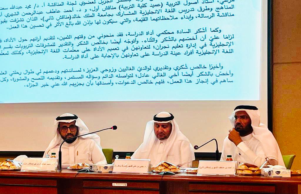 ناقش قسم المناهج وطرق التدريس رسالة ماجستير - كلية التربية