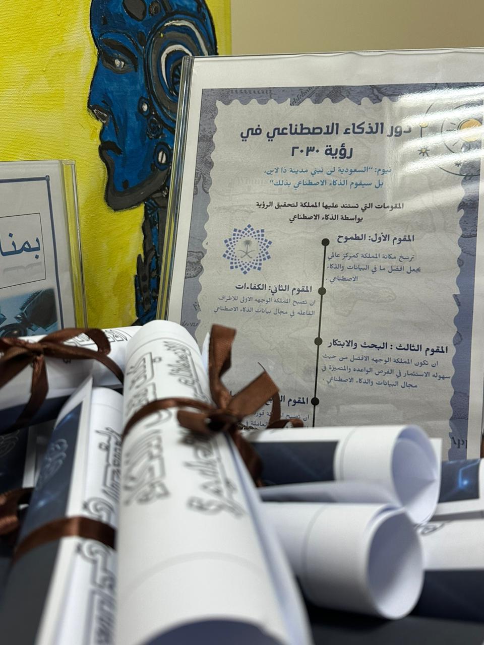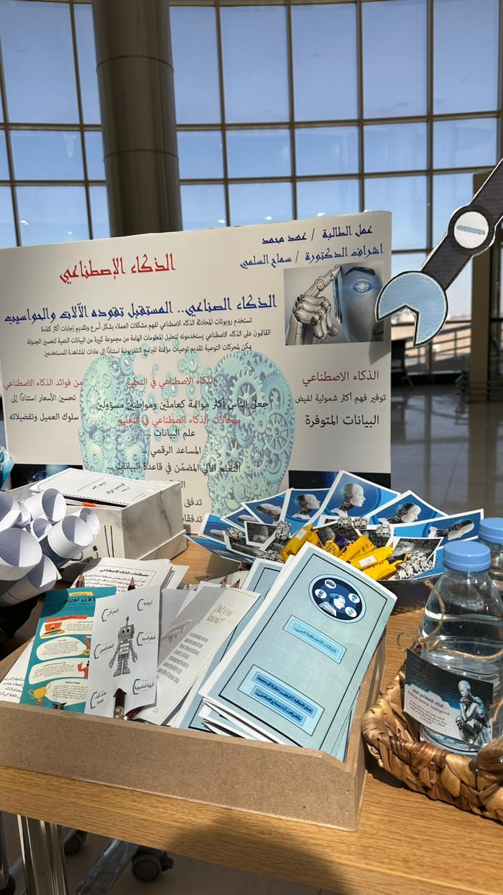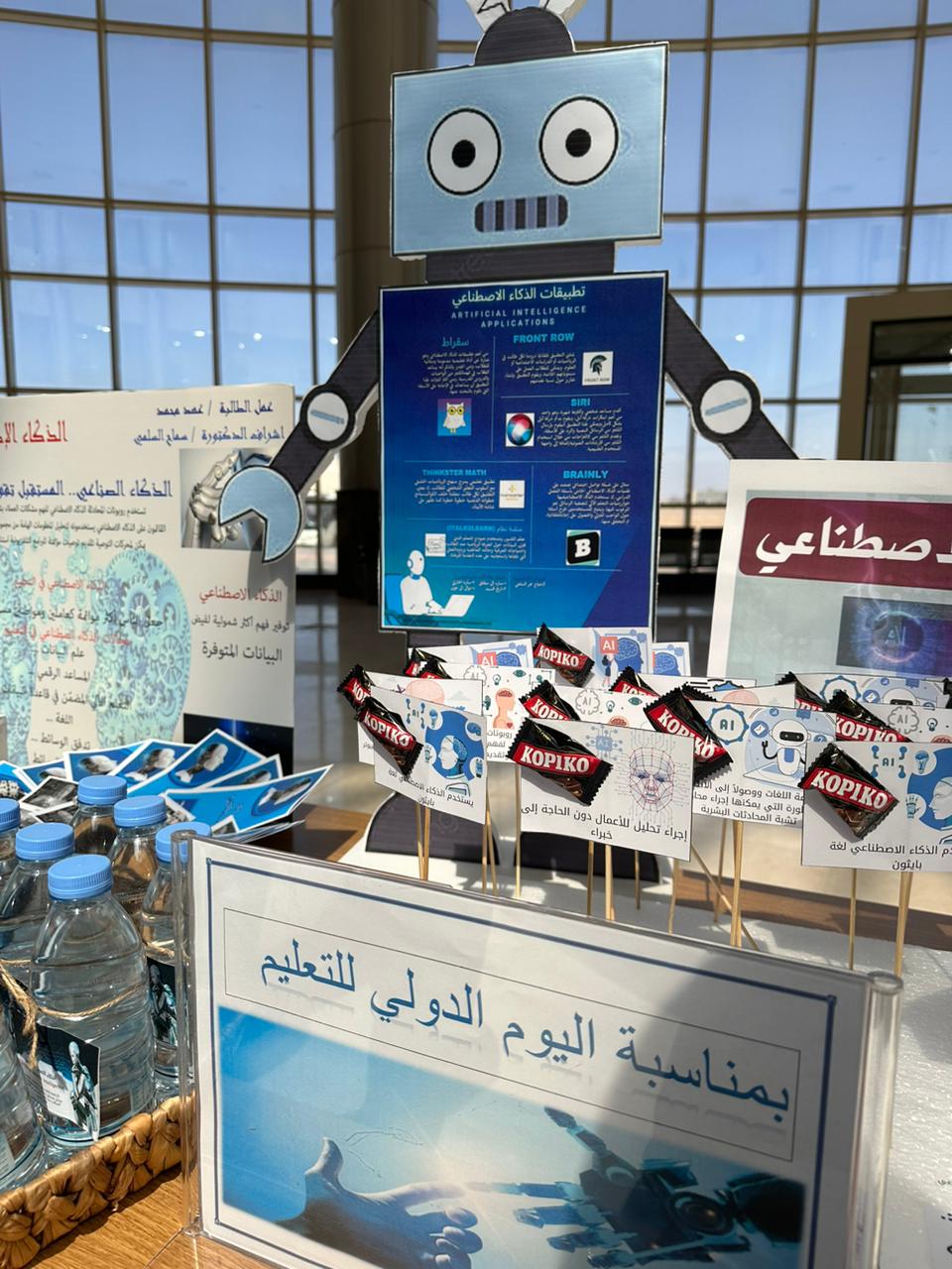 أقامت كلية التربية ممثلة في لجنة الأنشطة الطلابية شطر الطالبات يوم الثلاثاء الموافق 2-7-1444هـ ركن تحت شعار " واقع ومستقبل الذكاء الاصطناعي " بحضور عضوات هيئة التدريس وطالبات كلية التربية ، وقد تناول الركن الذي أشرفت على تنفيذه أ.سماح السلمي المحاضر بقسم التربية وعلم النفس عدة جوانب منها: مطويات توعوية عن أهمية الذكاء الاصطناعي في التعليم ، مجموعة متنوعة من الفيديوهات التعليمية عن أثر الذكاء الاصطناعي في تطور التعليم ، لوحات وبطاقات لتطبيقات تعليمية عن الذكاء الاصطناعي ، مطويات توعوية عن الأخطاء الشائعة عن الذكاء الاصطناعي .