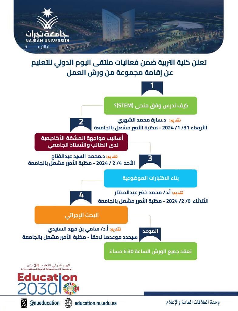 ورش عمل متميزة ستثري ملتقى اليوم الدولي للتعليم الذي تنظمهُ كلية التربية