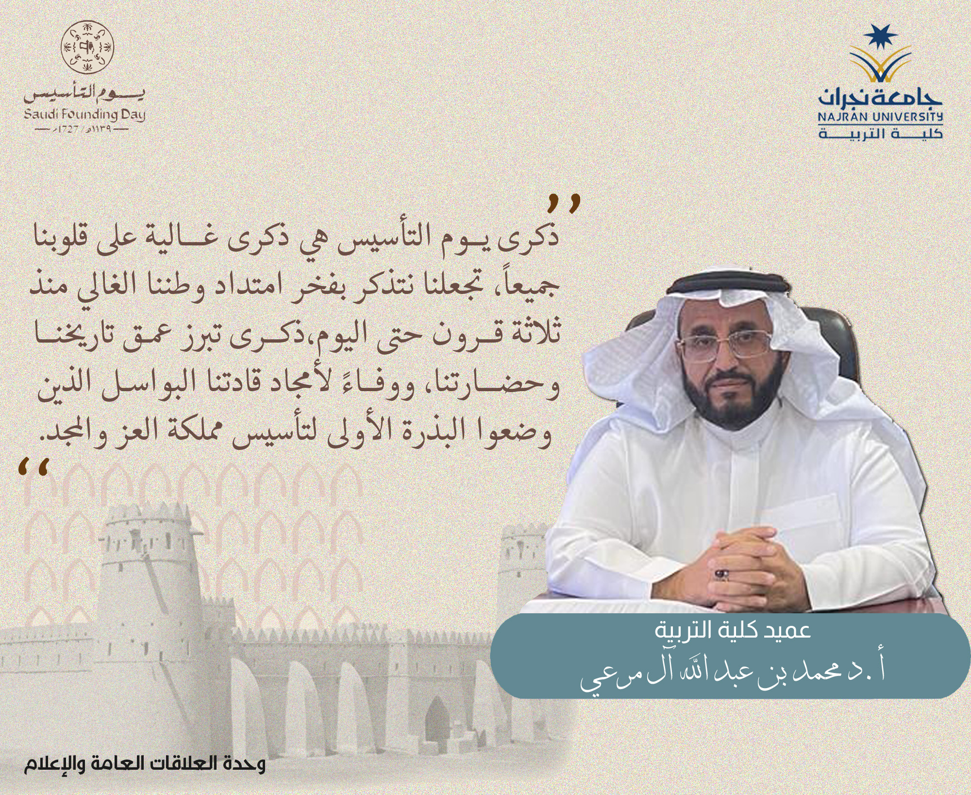null كلمة عميد كلية التربية الأستاذ الدكتور محمد بن عبدالله آل مرعي، بمناسبة يوم التأسيس