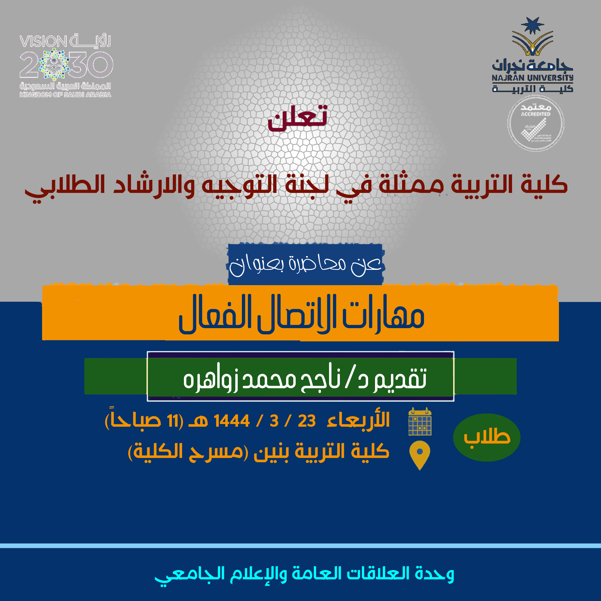 null تعلن كلية التربية ممثلة في لجنة التوجيه والارشاد عن إقامة محاضرة