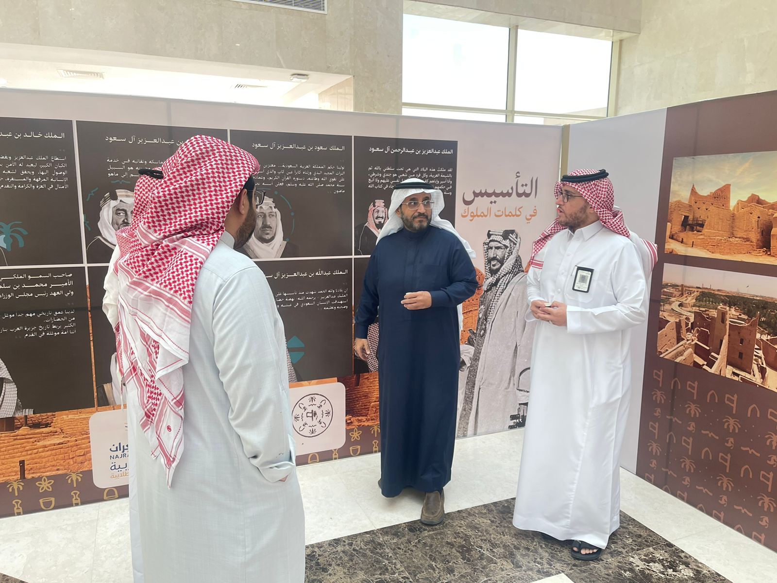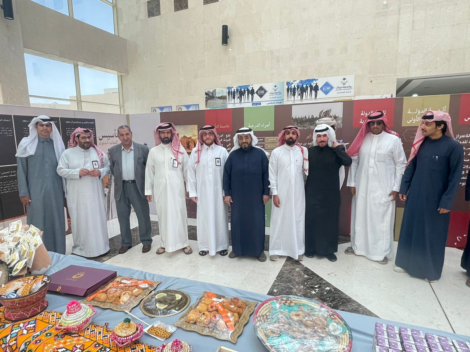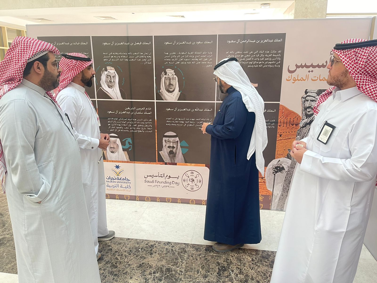 بحضور عميد كلية التربية الأستاذ الدكتور محمد بن عبد الله آل مرعي أقامت كلية التربية ممثلة في لجنة الأنشطة الطلابية يوم الاثنين الموافق 29-7-1444هـ ركن بمناسبة الاحتفاء بيوم التأسيس بحضور وكلاء الكلية ورؤساء الأقسام وأعضاء هيئة التدريس وعدد من طلبة الكلية،وقد احتوى الركن على مجموعة من اللوحات التعريفية مثل: التعريف بيوم التأسيس ، تاريخ الدولة السعودية ، التعريف بأمراء الدرعية وعاصمة التأسيس وعبارات عن تأسيس الدولة لملكوك المملكة العربية السعودية ، كمل اشتمل الركن على مشاركات لطلاب الكلية من ذوي الإعاقة الحركية بتقديم مشاركات أدبية بمناسبة يوم التأسيس ،حيث قدم الطالب حسين بلغيث الناشري قصيدة شعرية بهذه المناسبة ، وقدم الطالب ريان وحيد العلس كلمات ادبية عن يوم التأسيس ، ثم عرض الطالب عبد العزيز محمد مانع أبو ساقين لوحة فنية تعبر عن يوم التأسيس ، وقد كرّم عميد الكلية الأستاذ الدكتور محمد بن عبد الله آل مرعي الطلاب المشاركين في يوم التأسيس من ذوي الإعاقة الحركية ومتمنياً لهم التوفيق والسداد